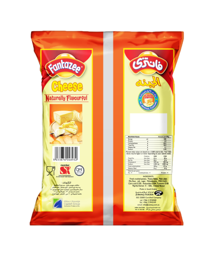 المنتج مصنوع من مزيج من مسحوق البطاطس ونكهة الجبنة اللذيذة. متوفر بأحجام مختلفة : 15 جرام ، 120 جرام .