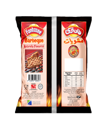 المنتج مصنوع من مزيج من مسحوق البطاطس ومكونات أخرى. بنكهة المشويات اللذيذة متوفر بأحجام مختلفة : 15 جرام ، 120