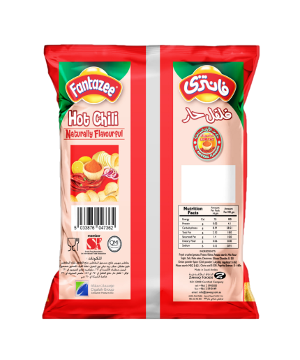 المنتج مصنوع من مزيج من مسحوق البطاطس ومكونات أخرى. بنكهة الفلفل الحار متوفر بأحجام مختلفة : 15 جرام ، 120