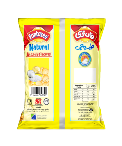 المنتج مصنوع من مزيج من مسحوق البطاطس ومكونات أخرى. بنكهة الملح . متوفر بأحجام مختلفة : 15 جرام ، 120