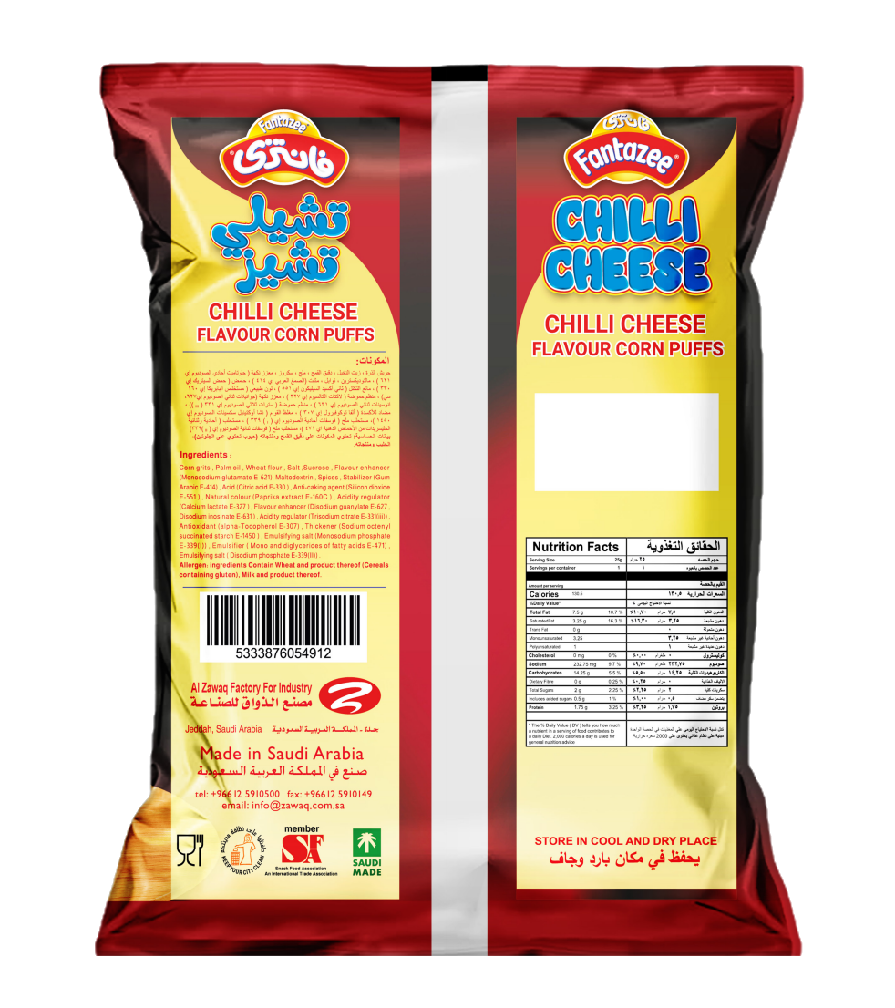 منتج مصنوع من دقيق الذرة بنسبة 100% مع طعم لذيذ من الجبنة الحارة . متوفر بحجم 22 جرام .