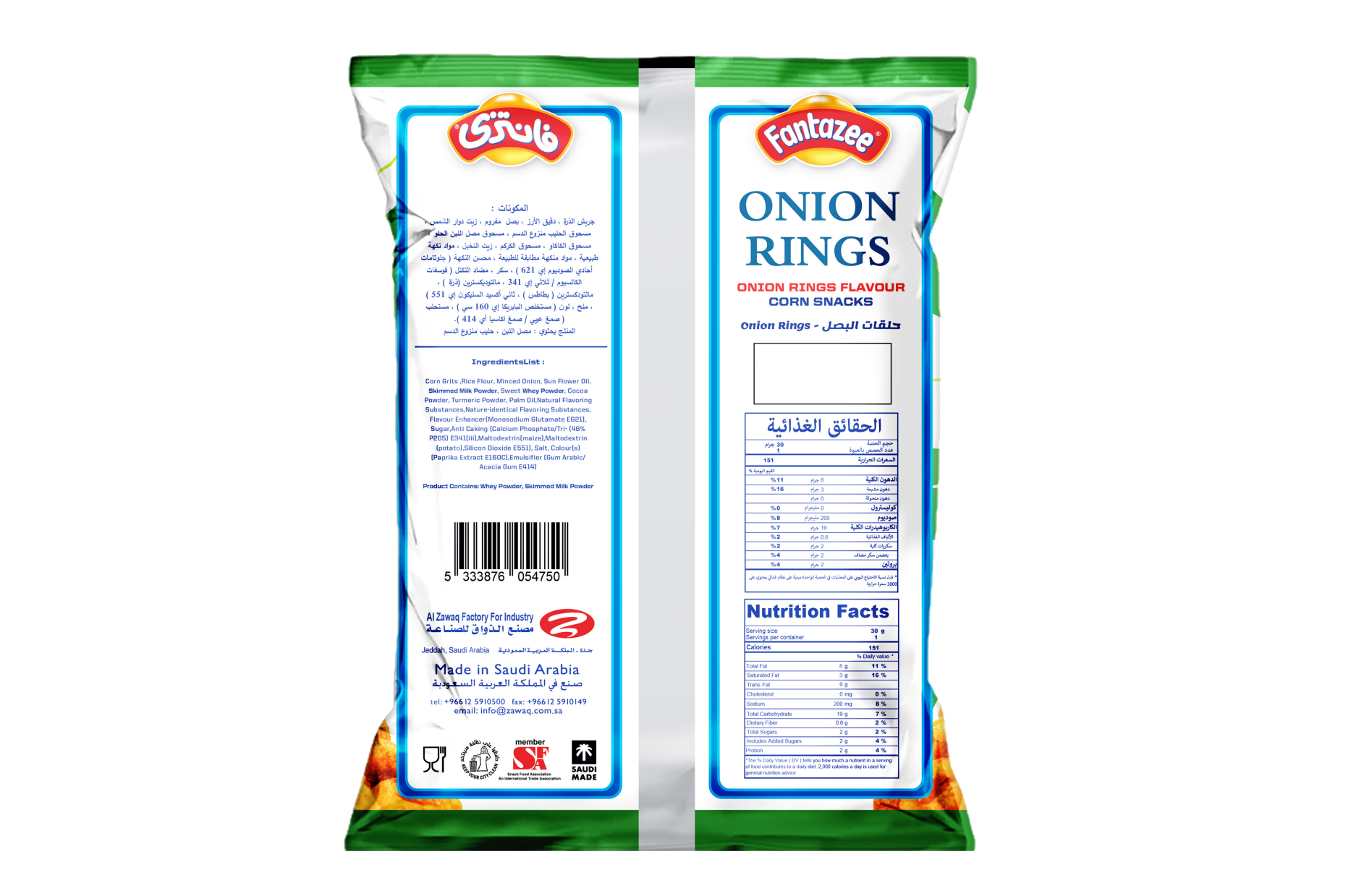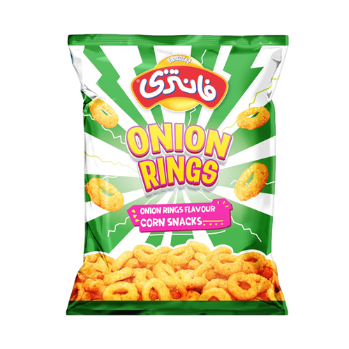 حلقات البصل مصنوع من مزيج من دقيق الذرة ودقيق الأرز مع نكهة البصل ، متوفر بحجم : 22 جرام .